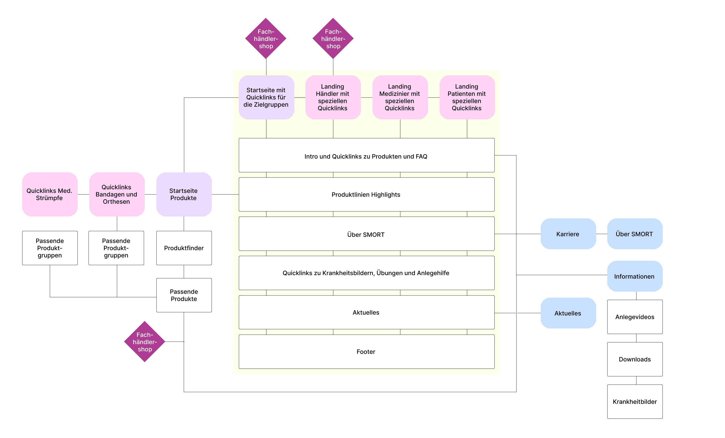 Komplexe Inhalte, drei Zielgruppen, ein Zugang: Die zentrale Hürde bestand darin, die enorme Produktvielfalt und die tiefgehenden Informationen (z.B. Anlegevideos, Krankheitsbilder) übersichtlich darzustellen. Dabei mussten drei sehr unterschiedliche Personas angesprochen werden, wobei der Fokus primär auf den Fachhändlern lag, die ihren Kunden das passende Produkt empfehlen müssen. Die Aufgabenstellung verlangte eine Balance zwischen Moderne und Tradition: Wie leitet man Nutzer schnell zum Ziel, reduziert die Klickrate und schafft gleichzeitig eine emotionale Markenbindung, ohne die Seriosität eines Medizinprodukteherstellers zu verlieren?