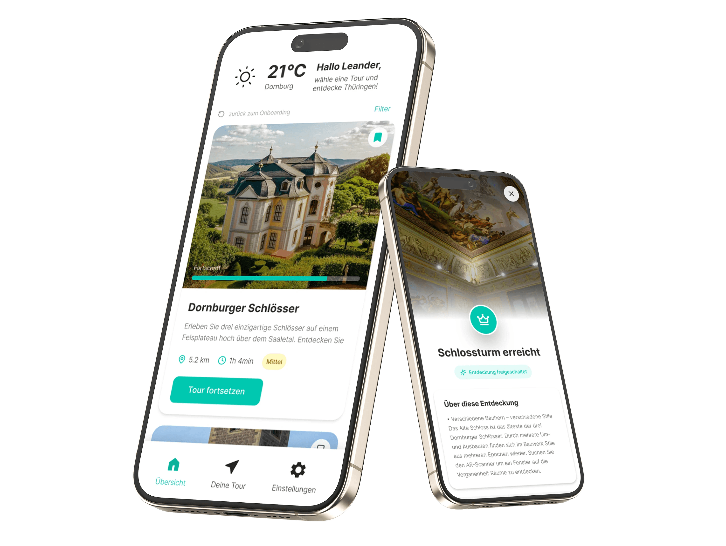 Dieses Projekt umfasst die Konzeption und das Design einer innovativen Reise-App, die als interaktiver Begleiter durch Thüringen dient. Ziel war es, den klassischen Tourismus durch moderne Technologien wie Augmented Reality (AR) und 360°-Panoramen aufzuwerten, um Nutzern ein tiefes Eintauchen in ihre Umgebung zu ermöglichen.